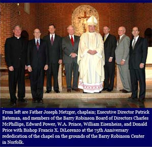 2007: The Most Reverend Francis X. DiLorenzo, Bishop of the Catholic Diocese of Richmond, recognizes The Barry Robinson Center as an independent Catholic institution. The Center returns to its faith-based roots while continuing to welcome residents of all faiths and backgrounds.- 2013: The Barry Robinson Center creates a new position, Spiritual Life Coordinator. The Spiritual Life Coordinator works with children of any faith or no faith. This person is available to the students on an ongoing basis. The students at The Center have the opportunity to attend weekly prayer services, led by students, and religious-based activities, which are all on a voluntary basis.